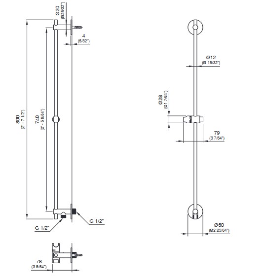 CEA Drążek prysznicowy z przyłączem wody i stożkowym uchwytem do słuchawki prysznicowej element zewnętrzny Satin Stainless Steel FRE214S