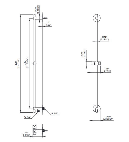 CEA Drążek prysznicowy z przyłączem wody i uchwytem do słuchawki prysznicowej element zewnętrzny Satin Stainless Steel FRE215S