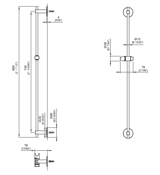 CEA Drążek prysznicowy z stożkowym uchwytem do słuchawki prysznicowej Satin Stainless Steel FRE73S