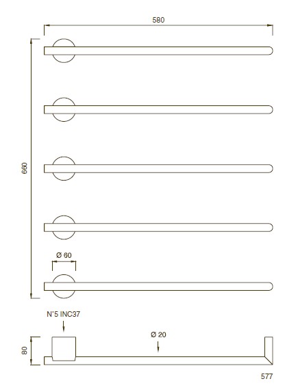 CEA Equilibrio Grzejnik elektryczny do ręczników 58 cm 5 elementy ścienny element zewnętrzny Satin Stainless Steel EQB05S
