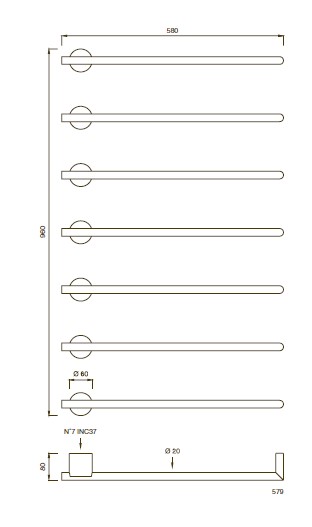 CEA Equilibrio Grzejnik elektryczny do ręczników 58 cm 7 elementy ścienny element zewnętrzny Satin Stainless Steel EQB07S