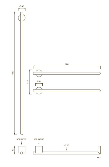 CEA Equilibrio Grzejnik elektryczny do ręczników 58 i 106 cm 3 element ścienny element zewnętrzny Black Diamond Satin EQB43KDS