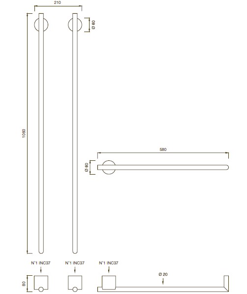 CEA Equilibrio Grzejnik elektryczny do ręczników 58 i 106 cm 3 element ścienny element zewnętrzny Black Diamond Satin EQB63KDS