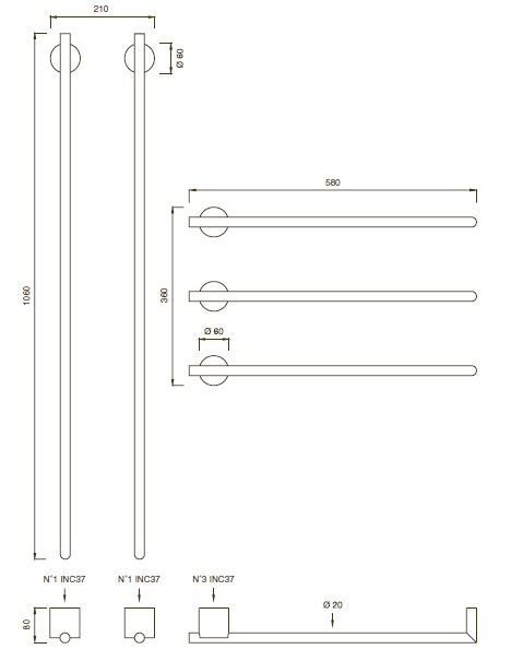 CEA Equilibrio Grzejnik elektryczny do ręczników 58 i 106 cm 5 element ścienny element zewnętrzny Black Diamond Satin EQB65KDS