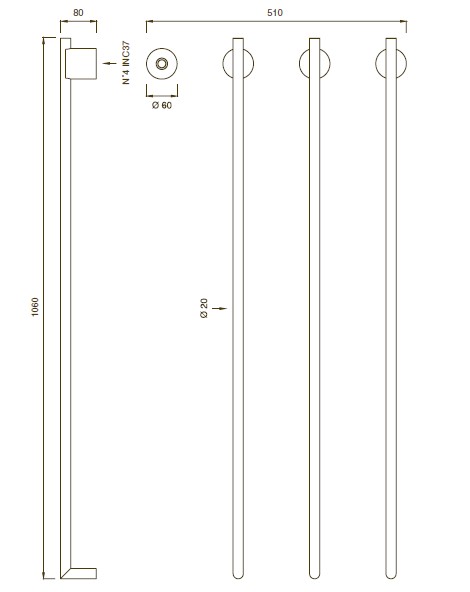 CEA Equilibrio Grzejnik elektryczny do ręczników 106 cm 3 element ścienny z przyciskiem zasilania element zewnętrzny Black Diamond Satin EQB33KDS