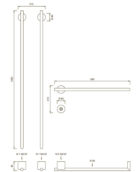 CEA Equilibrio Grzejnik elektryczny do ręczników 58 i 106 cm 3 element ścienny z przyciskiem zasilania element zewnętrzny Black Diamond Satin EQB73KDS