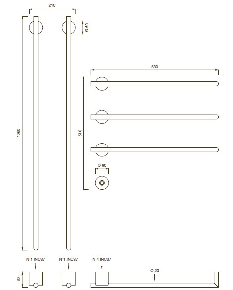 CEA Equilibrio Grzejnik elektryczny do ręczników 58 i 106 cm 5 element ścienny z przyciskiem zasilania element zewnętrzny Black Diamond Satin EQB75KDS