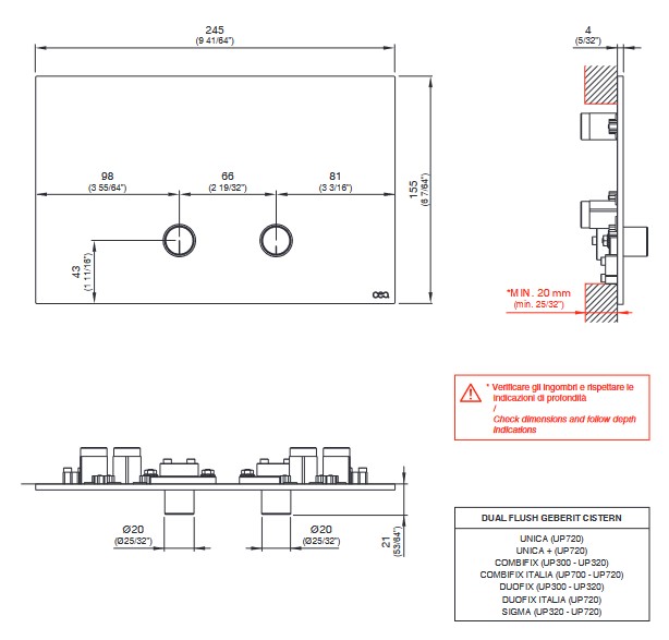 CEA Hydroplate Przycisk podwójny do spłuczki Geberit Satin Stainless Steel PLA01S