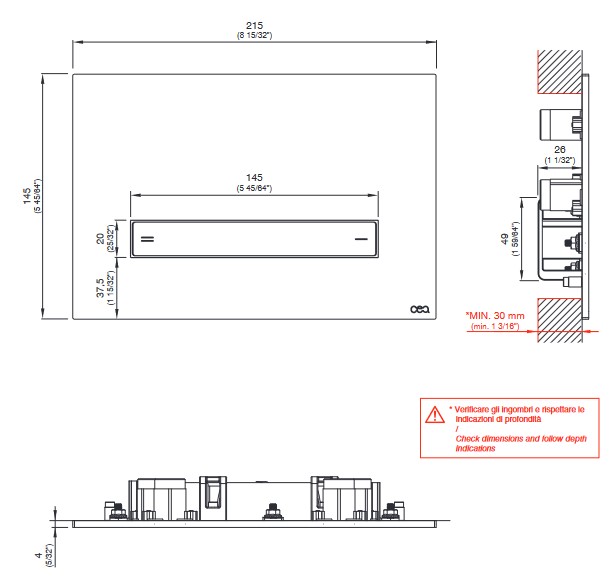 CEA Hydroplate Przycisk do spłuczki dwufunkcyjnej Geberit (Omega) Satin Stainless Steel PLA18S