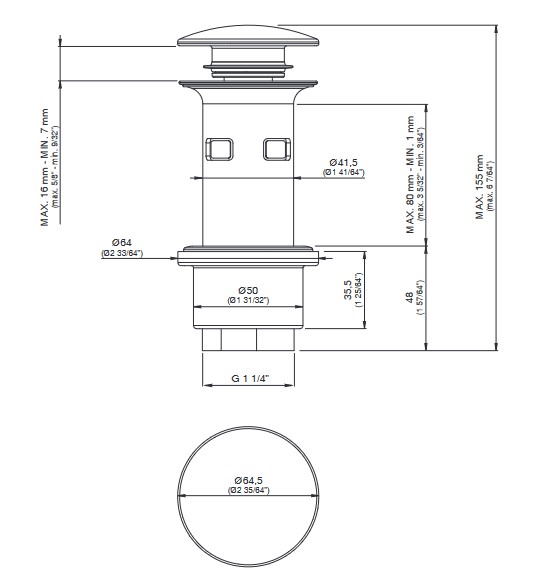 CEA Korek klik klak uniwersalny do umywalek/bidetów z przelewem lub bez przelewu Satin Stainless Steel PIL01S