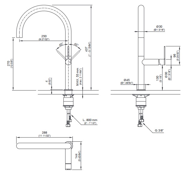 Wysięg wylewki: 25 cm