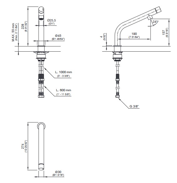 CEA Gastone Bateria podokienna kuchenna jednootworowa Satin Stainless Steel GAS24S