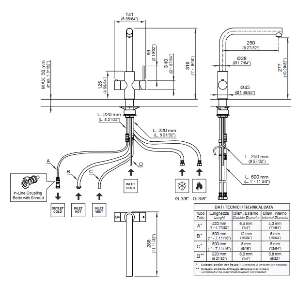 CEA Milo360 Bateria podokienna kuchenna jednootworowa z osobnym zaworem do zagotowanej wody Satin Stainless Steel MIL206S