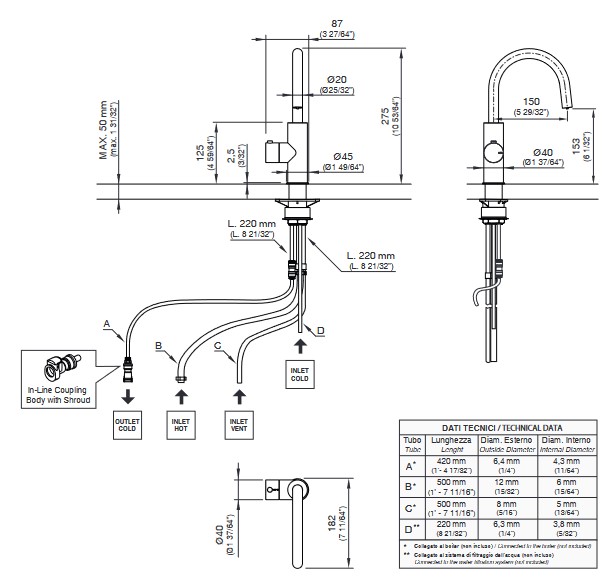 CEA Milo360 Bateria podokienna kuchenna jednootworowa z osobnym zaworem do zagotowanej wody Satin Stainless Steel MIL211S