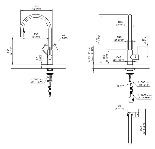 CEA Milo360 Bateria kuchenna jednootworowa z obrotową i wyciąganą wylewką Satin Stainless Steel MIL202S