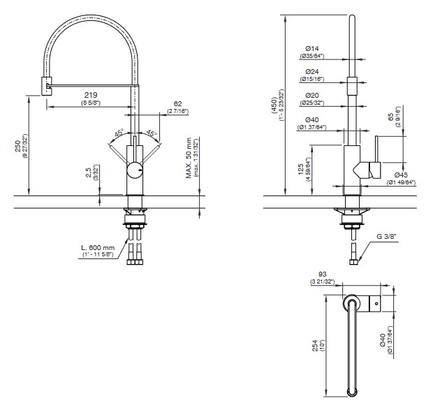 CEA Milo360 Bateria kuchenna jednootworowa z obrotową i wyciąganą wylewką Satin Stainless Steel MIL204BKS