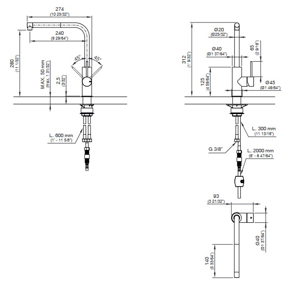 Wysokość wylewki: 28 cm