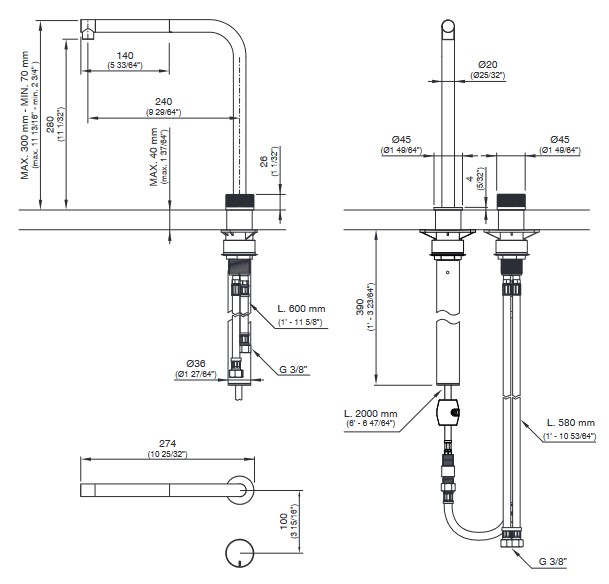 CEA Bateria kuchenna 2-otworowa z obrotową góra-dół i wyciąganą wylewką Satin Stainless Steel APP03S