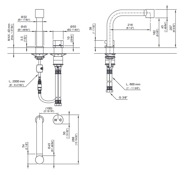 CEA Neutra Bateria kuchenna podokienna 2-otworowa z obrotową i wyciąganą wylewką Satin Stainless Steel NEU54S