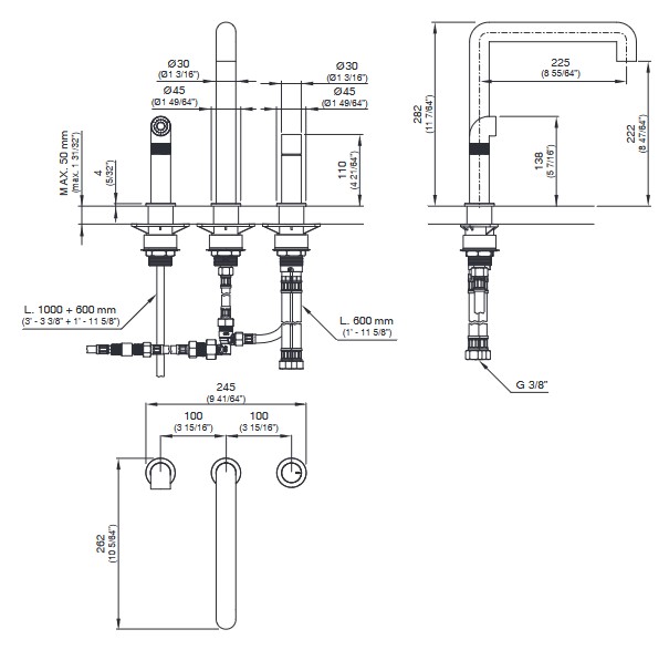 CEA Cartesio Bateria kuchenna 3-otworowa z obrotową i wyciąganą wylewką, z automatycznym przełącznikiem Satin Stainless Steel CAR08S