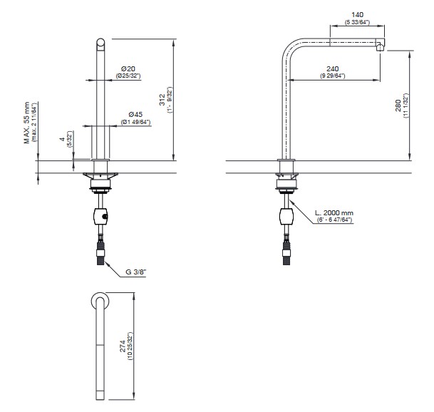 CEA Free Ideas Wylewka umywalkowa obrotowa i wyciągana jednootworowa H31,2 cm Satin Stainless Steel FRE147S
