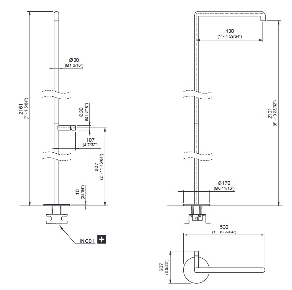 CEA Cartesio Kolumna prysznicowa zewnętrzna wolnostojąca bez elementu podtynkowego Satin Stainless Steel CAR160S