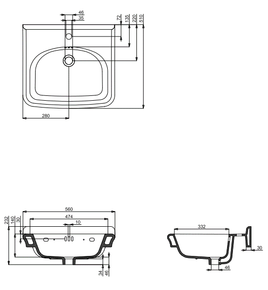 Burlington Guild Umywalka 56x51 biały GU0561SCW
