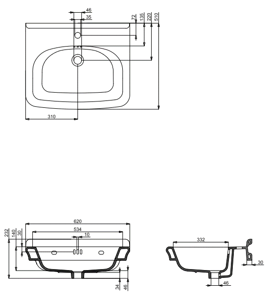 Burlington Guild Umywalka 62x51 biały GU0623SCW