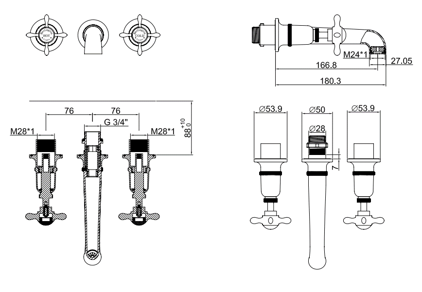 Rozstaw przyłączy: 7,6 cm i 7,6 cm
