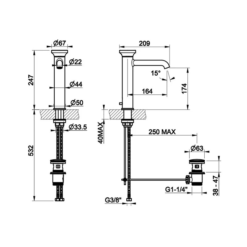 Gessi Origini Bateria umywalkowa z korkiem Chrom 66005.031