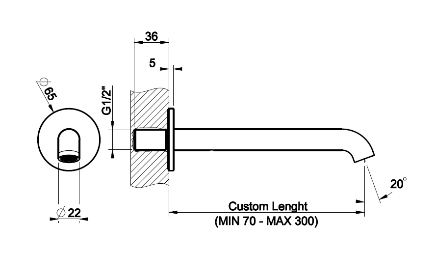 Gessi Wylewka ścienna 70 - 300 mm Chrom 66104.031
