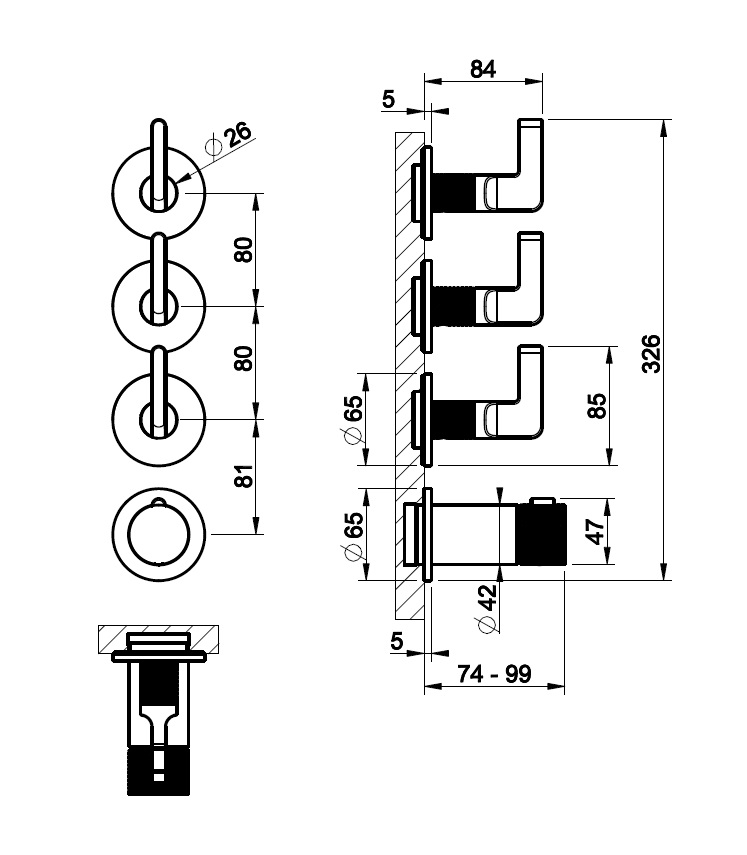 Gessi Inciso Shower Bateria natryskowa termostatyczna 4-uchwytowa podtynkowa 3-drożna - element zewnętrzny Black Metal Brushed PVD 58336.707