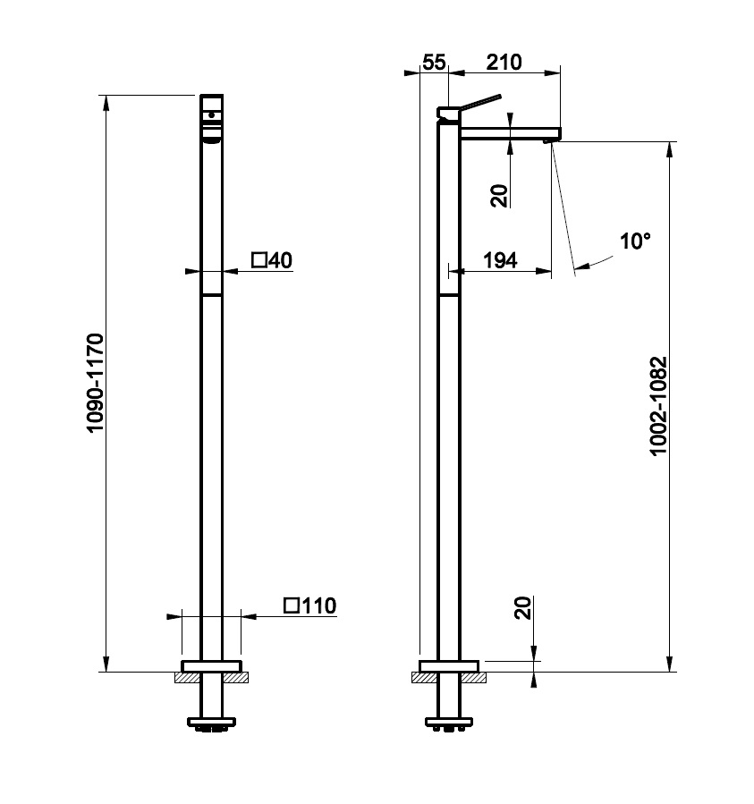 Gessi Rettangolo Bateria umywalkowa wolnostojąca Chrom 53095.031