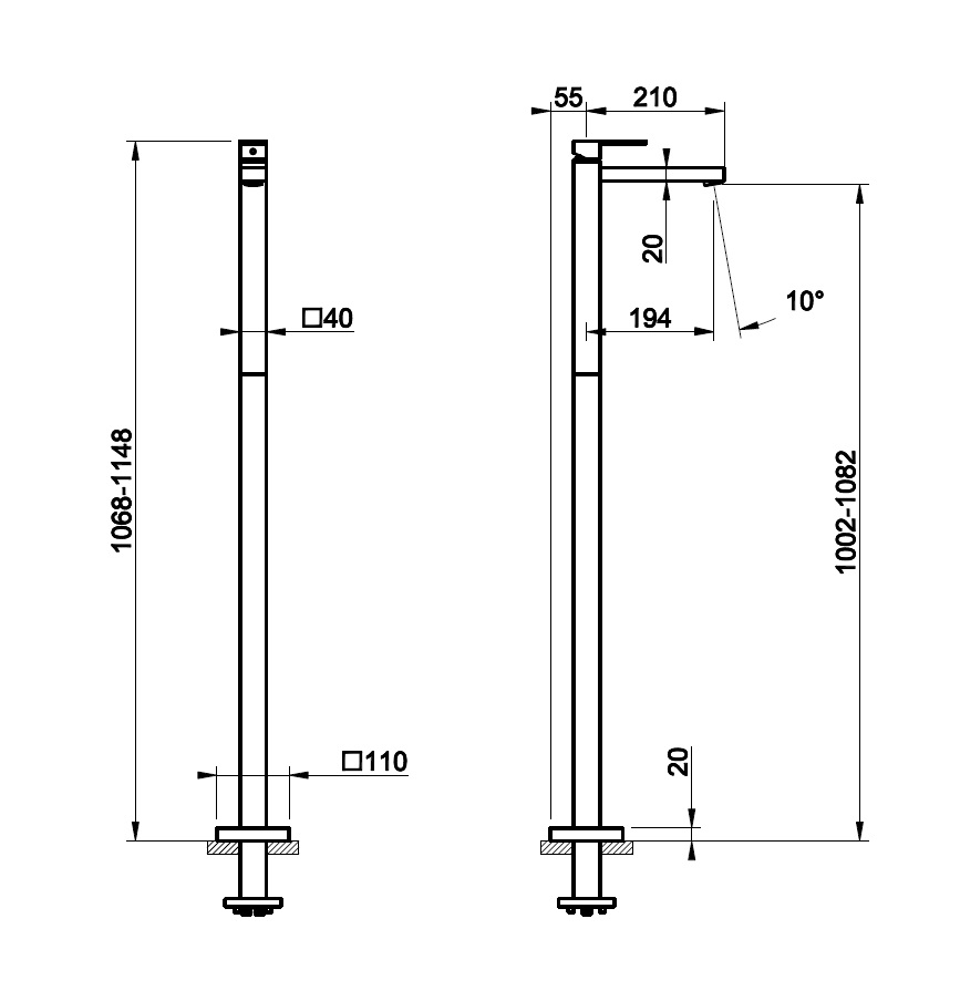 Wysokość wylewki: 1002 - 1082 mm