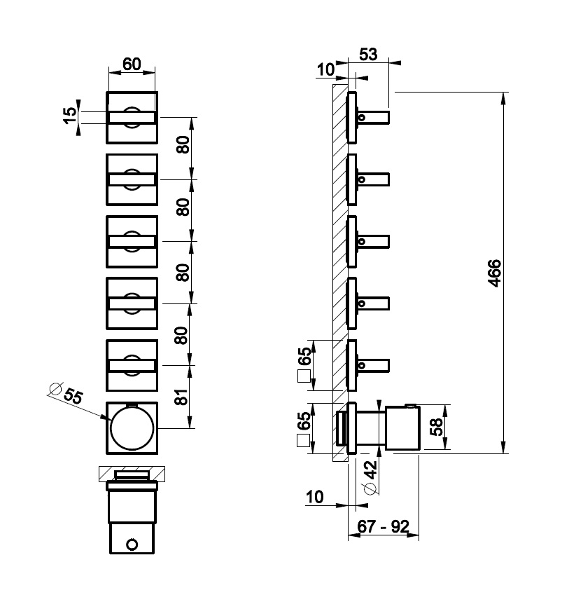 Gessi Rettangolo Bateria natryskowa termostatyczna 6-uchwytowa podtynkowa 5-drożna - element zewnętrzny Chrom 44340.031