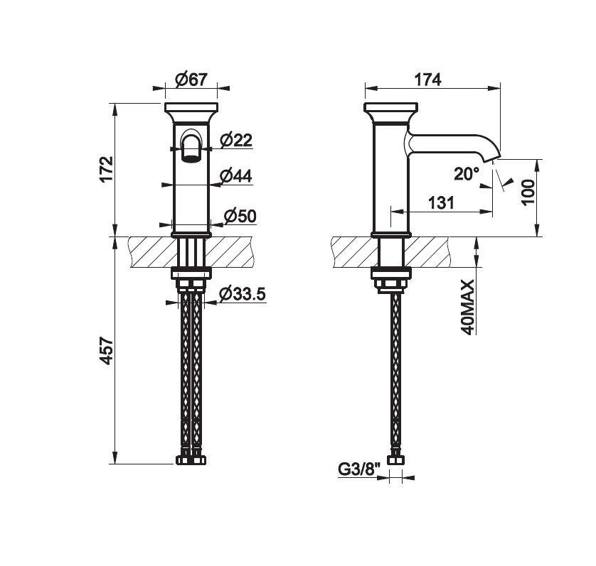 Gessi Origini Bateria umywalkowa jednootworowa brushed brass PVD 66002.727