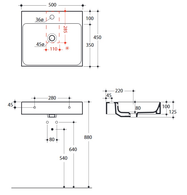 Kerasan Cento Umywalka Ścienna/Stawiana na Blat 50x45 cm Biały 353001