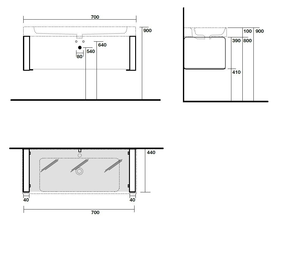 Kerasan Cento Stelaż Umywalkowy 70x45 cm Chrom 9125K1