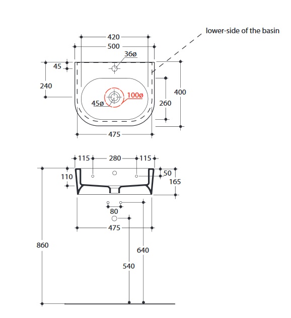 Kerasan Flo Umywalka Ścienna/Stawiana na Blat 50x40 cm Biała 314101