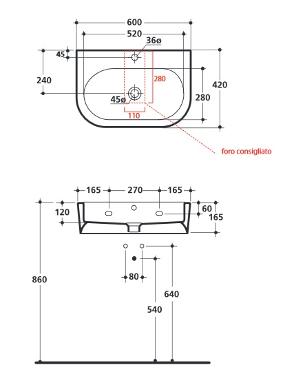 Kerasan Flo Umywalka Ścienna 60x42 cm Biała 314201