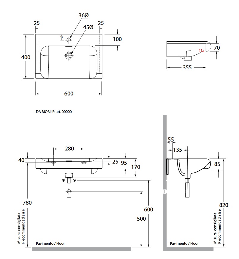 Kerasan Inka Umywalka Półwpuszczana w Blat 60x40 cm Biały 341101