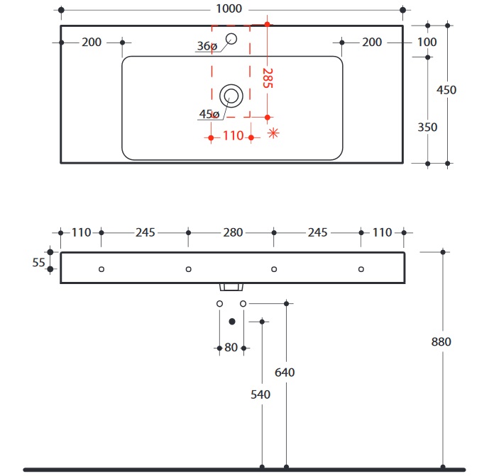 Kerasan Cento Umywalka Ścienna/Stawiana na Blat 100x45 cm Biały 355001