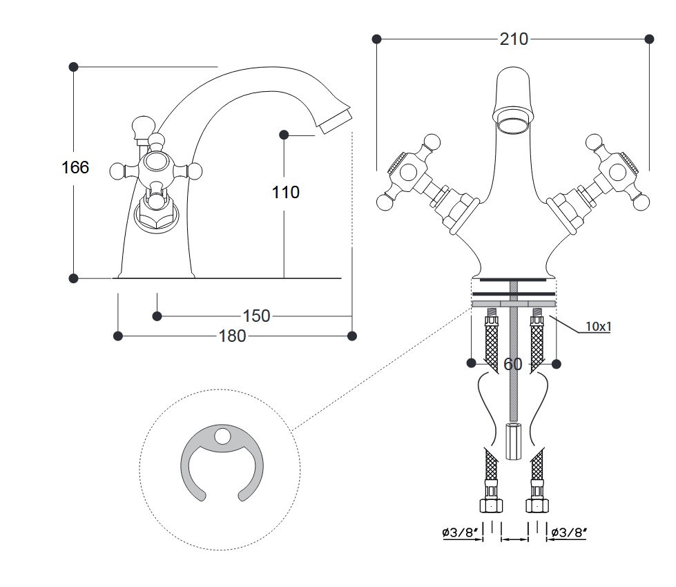 Kerasan Retro Bateria Umywalkowa jednootworowa Chrom 738990