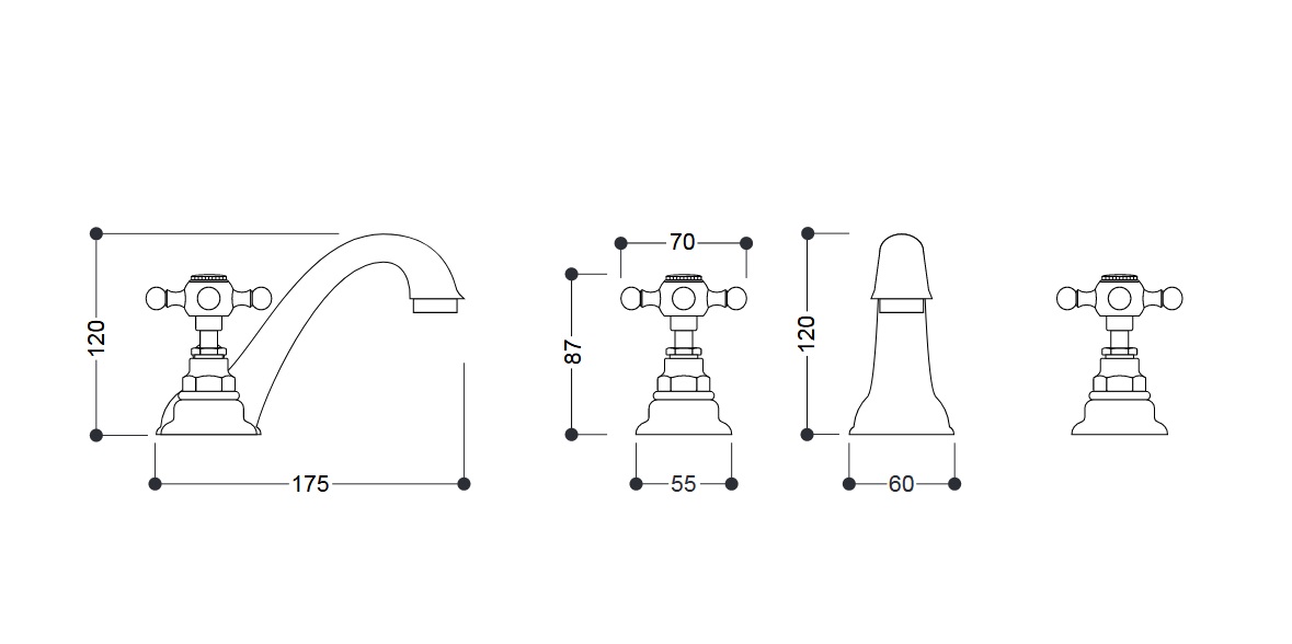Kerasan Retro Bateria Umywalkowa 3-otworowa Chrom 739190