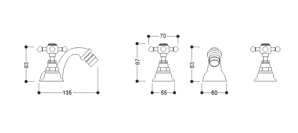 Kerasan Retro Bateria bidetowa 3-otworowa chrom 739290