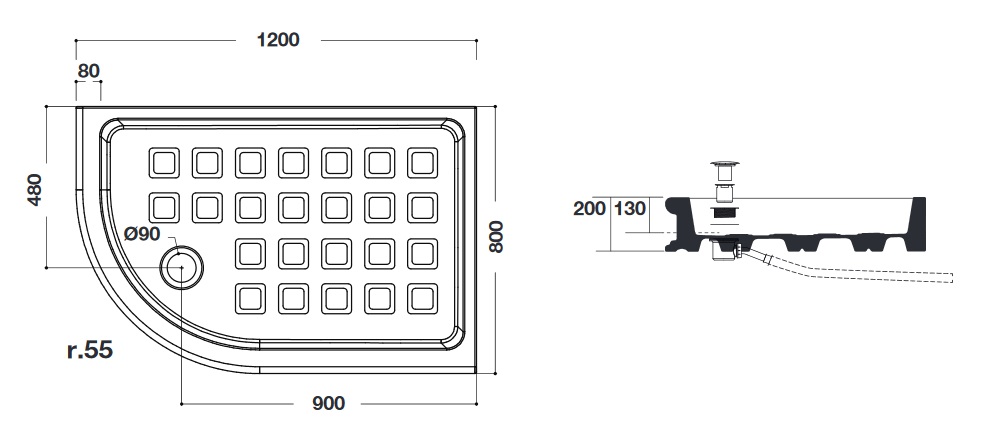 Kerasan Retro Brodzik Półokrągły Lewy 80x120 cm Biały 133301