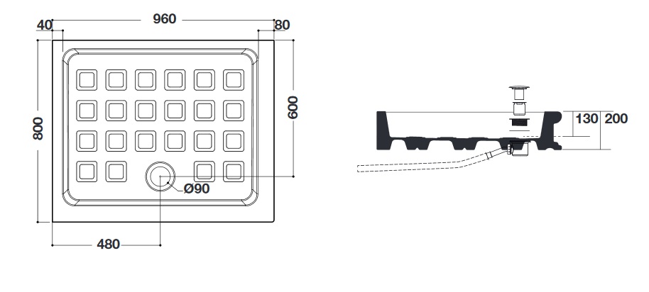 Kerasan Retro Brodzik Prostokątny Prawy 80x96 cm Biały 133601