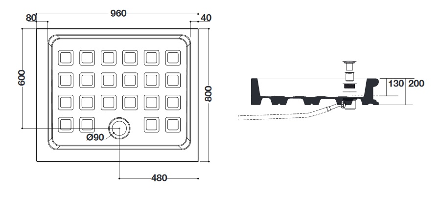Kerasan Retro Brodzik Prostokątny Lewy 80x96 cm Biały 133701