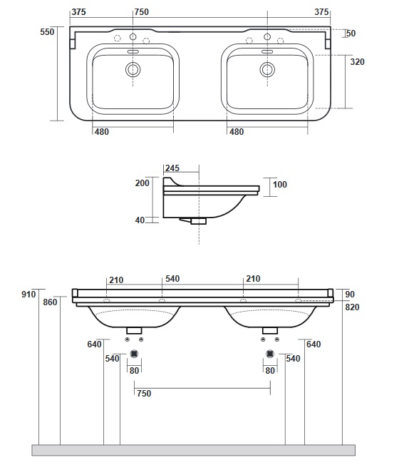 Kerasan Waldorf Umywalka Ścienna Podwójna 150x55 cm Biały 4143K1