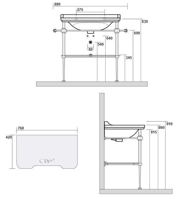 Kerasan Waldorf Stelaż umywalkowy 80 cm Chrom 9197K1